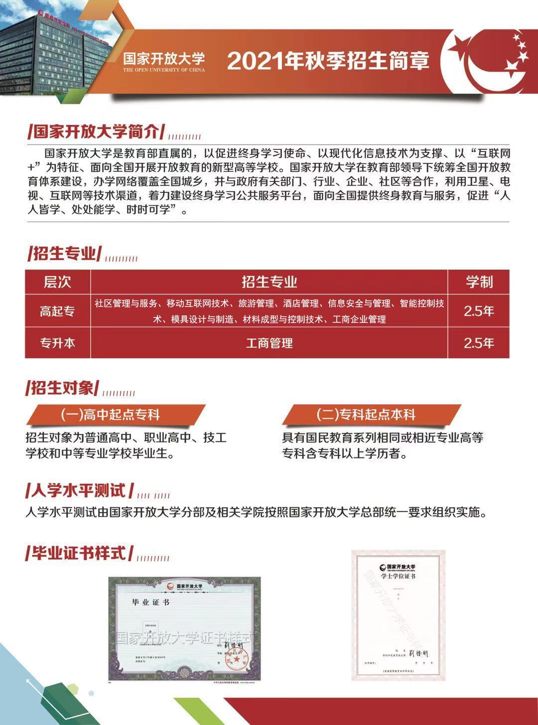 国家开放大学,学制2年毕业,不限户籍,请同学们查询信息,有问题及时上报。招生电话:13340777658.何老师
